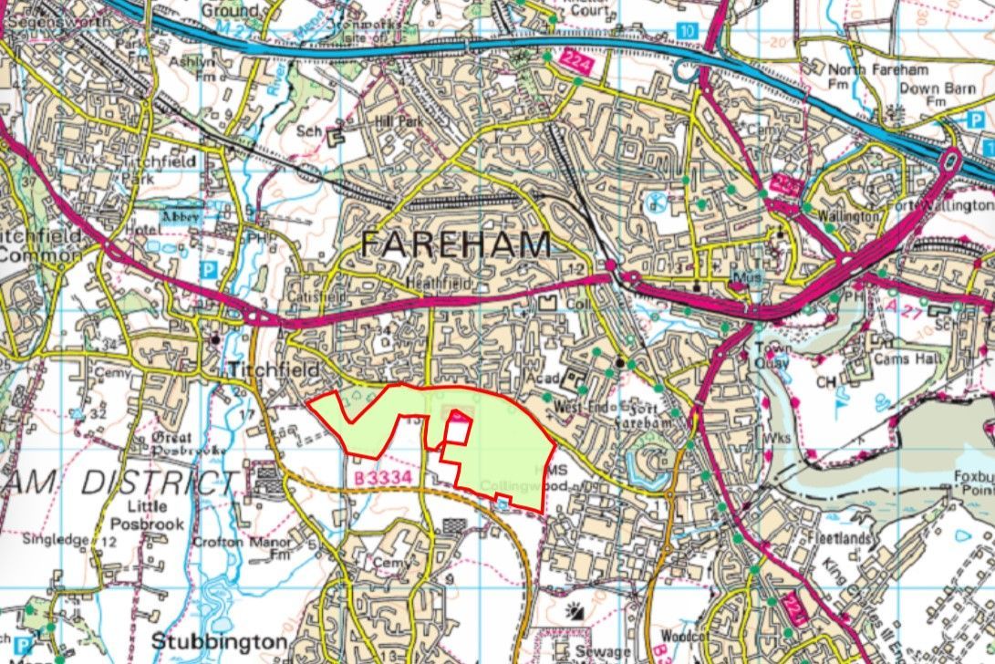 Immediately south of Longfield Avenue and Rowan Way, Peak Lane runs from north to south through the Site from Fareham to Stubbington, dividing the site into two parcels of land. On the eastern boundary is HMS Collingwood and agricultural fields to the south. The western parcel of land is bounded by agricultural fields to the south and Ranvilles Lane to the west, with Oxley’s Coppice enclosing the land from the north.